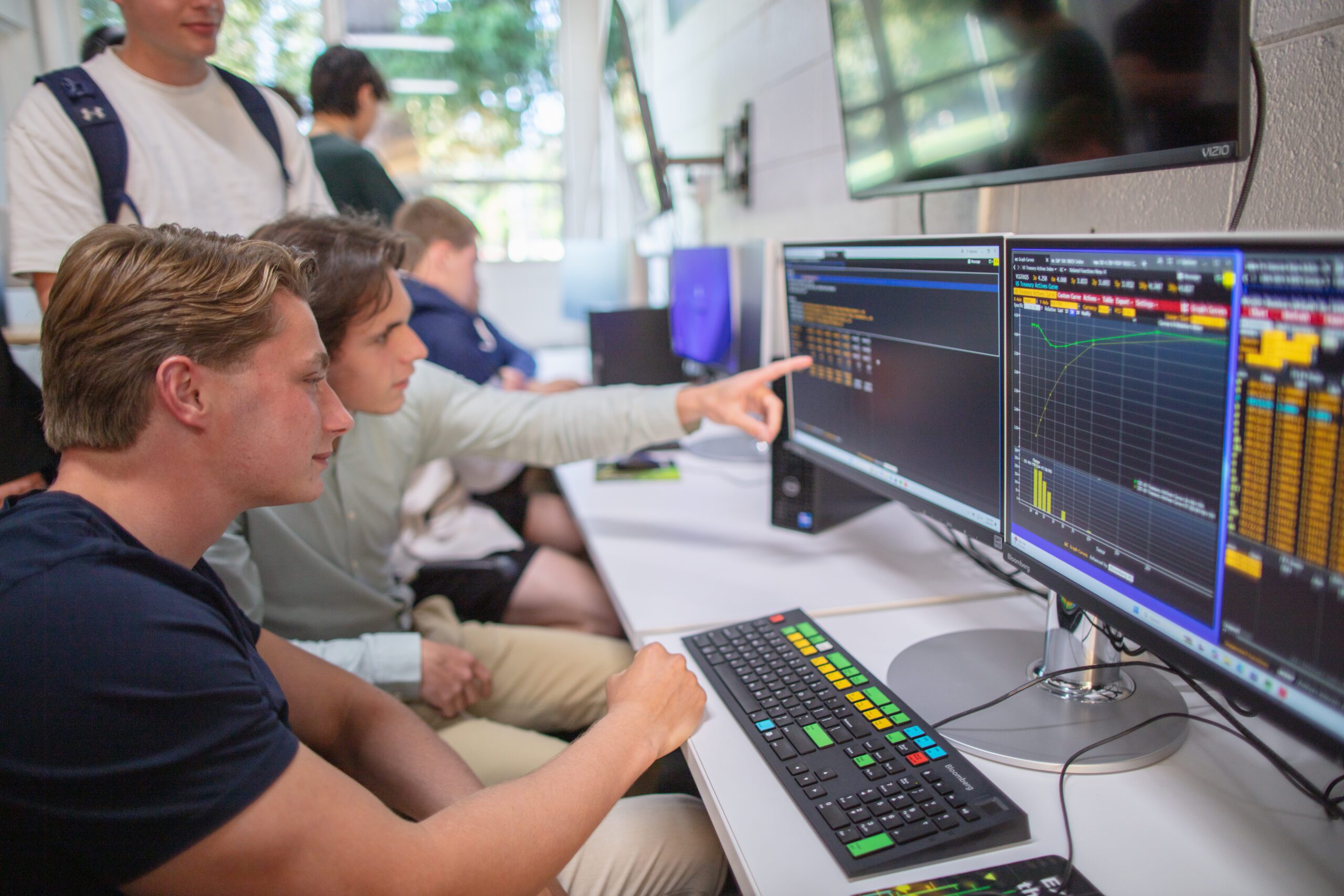 The Bloomberg Trading Challenge offers students a unique opportunity to apply their classroom knowledge in a fast-paced, real-world setting. Using the Bloomberg Terminal, teams of students engage in simulated trading exercises that mirror global financial markets, sharpening their analytical, decision-making, and teamwork skills. By competing against peers nationwide, participants gain valuable experience with industry-standard tools and develop insights that prepare them for successful careers in finance.